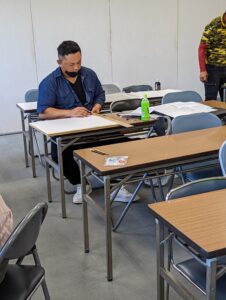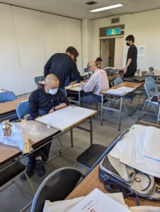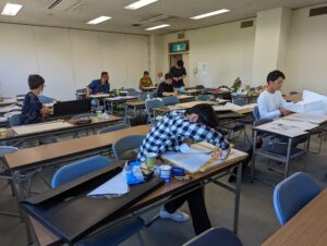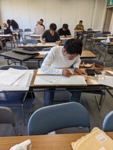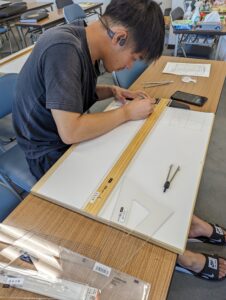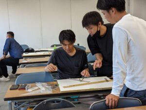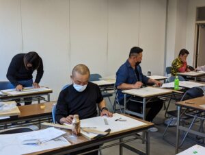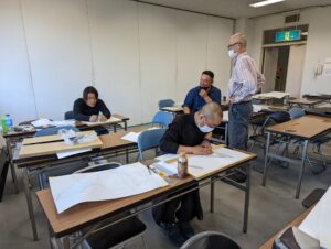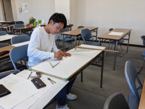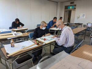が、製図が初めての訓練生もいたので製図道具の説明からやっておりました