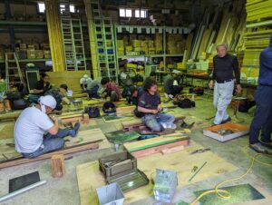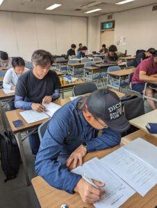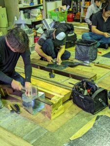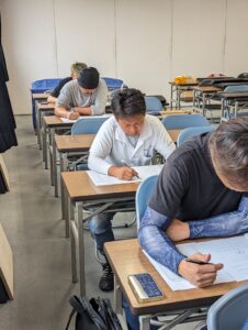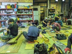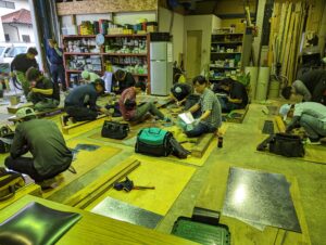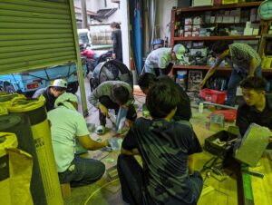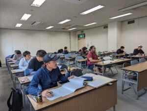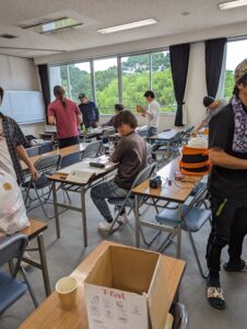 終わりの挨拶をして終了です。この日もすっごい雨降りになったので、急いでシャッター下ろしたりしてました。帰りには上がりましたけどね(^^) 暑い一日でしたが皆最後まで頑張っておりました。完成しなかった訓練生は次回実技授業で完成させます!! 手がけた作業は完成させる!!を今年の目標にしております。次は15日『学科授業』です。