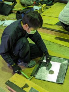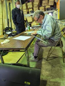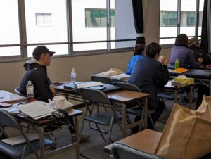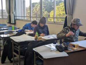 最後に展開を残って画いている訓練生!!なかなか頼もしく感じました。しっかり苦手克服に頑張っておりました。この頑張りが、後々生きてくると思うので、この姿勢は大好きです(* ̄▽ ̄)フフフッ♪ 次回は『実技授業』一年生は折り鶴の講習をするようです(^^)