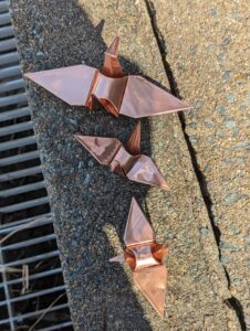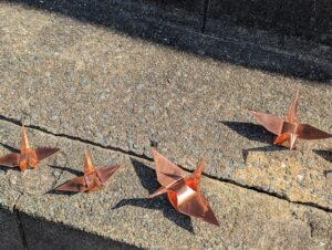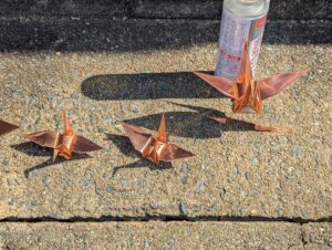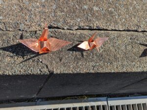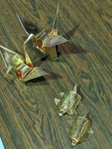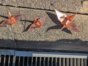 朝の挨拶をし、一年生は『折り鶴 』作り