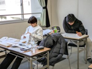 次回実技授業で行う銅板レリーフの図案を描く!!