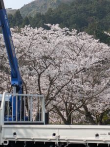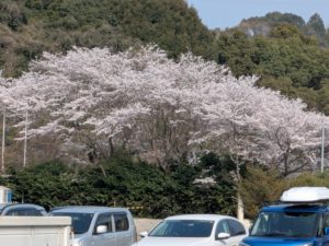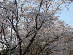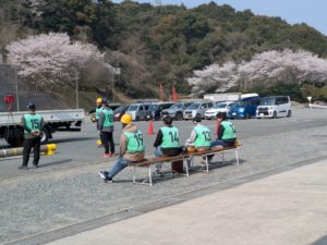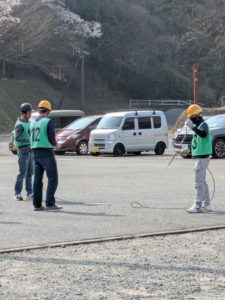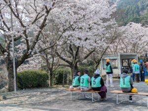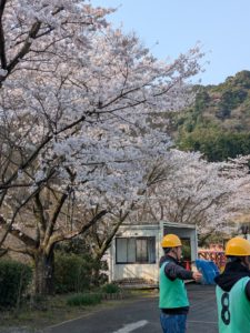 満開の桜の下で実技授業