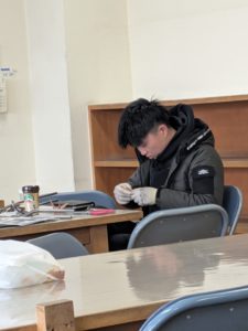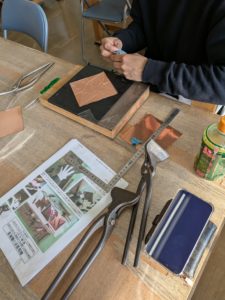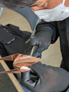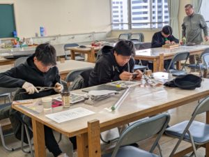今回は、銅板レリーフ、着色の授業です、