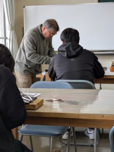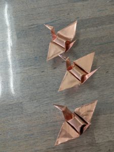 皆、休憩を忘れるほどの集中で作っておりました。最低三羽の鶴製作です。それぞれ個性的な鶴が出来ておりましたが、ちゃんと鶴になっておりました。