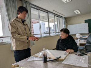技能競技大会に出る組合員の方が展開の指導を受けに来ていました。